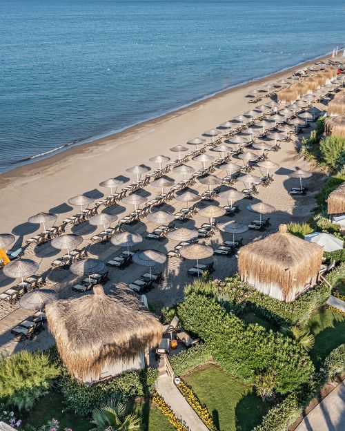 ПЛАЖ: Собствен, пясъчен. Чадъри и шезлонги на плажа и при басейна – безплатно.