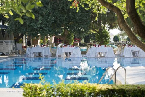 Хотелът разполага с външен и вътрешен плувни басейни, основен ресторант, 2 а-ла-карт ресторанта(османски и средиземноморски), 2 бара, СПА център, сауна, парна баня, турска баня, фитнес, аеробика, анимация, водни спортове, WI-FI.