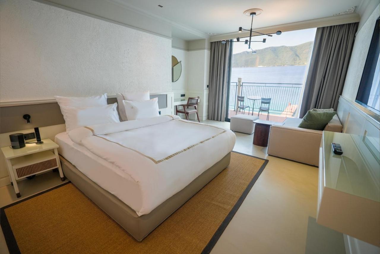 Хотелът разполага с 24 Deluxe Rooms и 10 Suites, всички с гледка към морето: 14 Deluxe Garden Sea View (35 m², с директен достъп до инфинити басейн и шезлонг), 10 Deluxe Balcony Sea View Room (35 m²), Deluxe Beachfront Room (50 m², с директен достъп до плажа и балкон), 1 One Bedroom Beachfront Suite (70 m², състои се от спалня, трапезария и баня с директен достъп до плажа), 1 Two Bedroom Beachfront Suite (75 m², състои се от 2 спални с едно двойно легло и две единични легла, трапезария, 2 бани, тераса с директен достъп до плажа), 2 Junior Suite (90 m², състои се от спалня, гардеробна и тераса с шезлонги), 1 Bodrum Suite (100 m², състои се от трапезария с кухня, спалня, гардеробна и две бани), 3 Jacuzzi Suite (80 - 110 m², състои се от спалня, трапезария, тоалетна, гардеробна, баня и джакузи на терасата), 1 Pool Suite (130 m², състои се от трапезария, 2 спални и 3 бани, има собствен басейн и зона за слънчеви бани), 1 Casa Nonna Suite (състои се от две отделни помещения: Bodrum Suite и Jacuzzi Suite, свързани с врата; общо две спални, четири бани с тоалетни и две дневни).