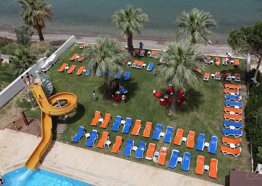 Намира се на 95 км от летище Измир, на 145 км. от летище Милас, на 22 км. от центъра на Кушадасъ, в селището Гюзелчамлъ, на брега на морето. Частично реновиран 2024 г.