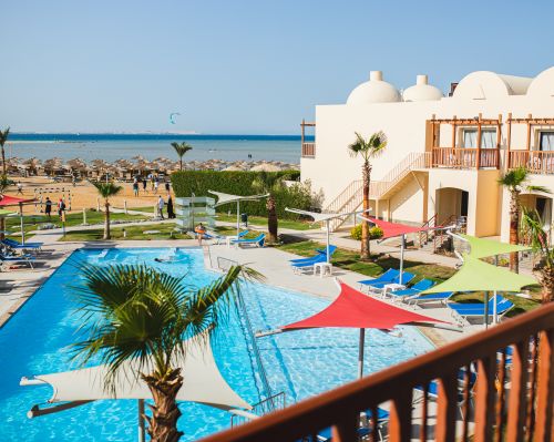 Намира се на 12 км. от летище Хургада, на 17 км. от центъра на Хургада, на брега на морето.