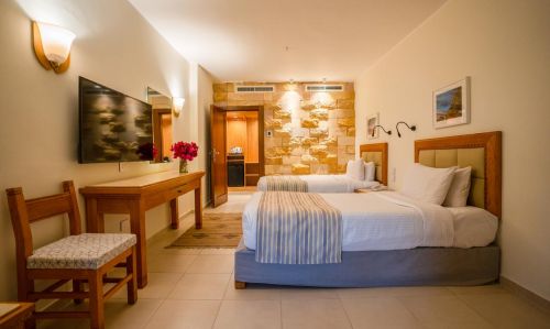 Хотелът разполага с общо 471 стаи, разположени в две 4-етажни сгради и три 1 и 2 етажни вили - Standard room (Sea side view, макс. 2+1 чов., само едно допълнителон легло за стая, 28-35 м2), Superior Room (Sea Side/Sea view, само едно допълнителон легло за стая, 32-42 м2 ); Family Room (Garden/Pool view, 1 стая, само едно допълнителон легло за ста, 44 м2), Family Suite (Sea/Garden view, две спални с врата, 44 м2 вкл. баня и балкон); Superior Suite (Sea/Garden view, една спалня, гостна, 38 - 44 м2 вкл. баня и балкон); Presidential Suite (Sea/Garden/Pool view, една спалня, гостна, 48 м2 вкл. баня и балкон);Villa one bedroom (една спалня, гостиная, есна баня и тераса); Duplex Villa (две спални, гостна, две бани и тераса). Всички стаи са оборудвани с климатик, телевизор, телефон, баня с душ, сешоар, сейф (безплатно). Почистване на стаите и смяна на кърпите - всеки ден, смяна на спално бельо – 3 пъти в седмицата.