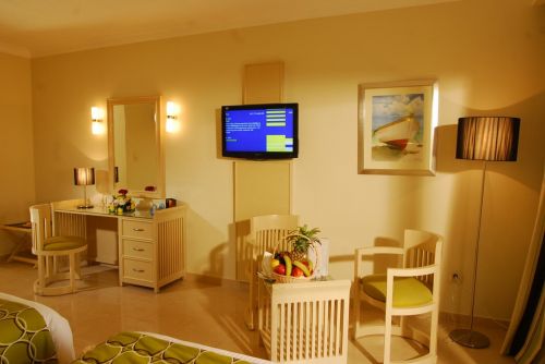 Хотелът разполага с 388 стаи, от които стандартни стаи (основна сграда – 32 кв.м.), стандартни стаи (бунгало - 28 кв.м.), стандартни стаи изглед море (– 32 кв.м.), клубни стаи (32 кв.м.), супериор стаи (32 кв.м.). Всички помещения са оборудвани с климатик, телевизор, телефон, баня с вана/ душ. сешоар, хладилник, сейф, хладилник, кана за кафе и чай, Wi Fi (платен), балкон.
