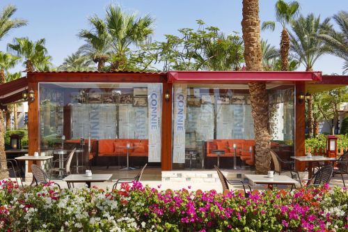 Основен ресторант El Wadi, италиански а ла карт ресторант Al Fresco (едно безплатно посещение на престой, след предварителна резервация), наргиле бар (срещу заплащане), бар Oasis, бар на плажа, бар басейн Flambé, кафене Havana, бар Pirates, 4 открити басейна (един от които е отопляем през зимата), СПА център, достъп до Cleo Park (един от най-големите водни паркове в Шарм Ел Шейх с 21 пързалки), дневни и вечерни шоу програми.