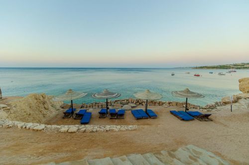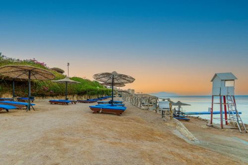 Собствен, с дължина 350 м. плаж с коралови пясъчни тераси и лесен достъп за гмуркане с шнорхел на рифа Far Garden, кей. Чадъри, шезлонги и плажни кърпи на плажа и при басейна – безплатно.