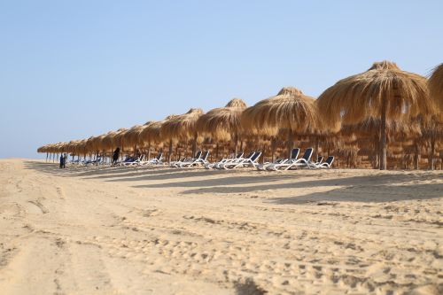Собствен, пясъчен, с дължина 250 м. Чадъри, шезлонги, матраци и плажни кърпи на плажа и при басейна - безплатно.