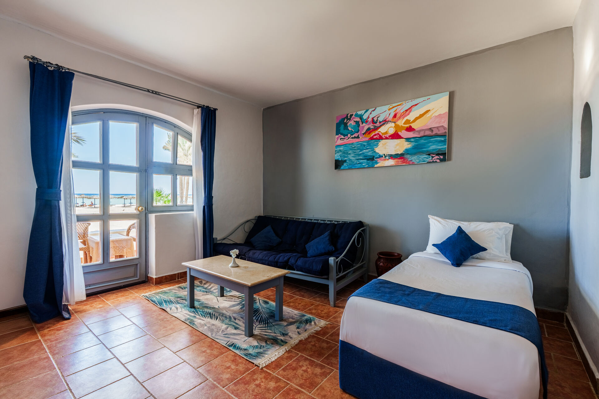 Хотелът разполага с общо 112 стаи, от които Standard Pool View Room (30 м2), Superior Double or Twin Room with Sea View (35 м2), Family Room (50 м2) и Junior Suite (65 м2).