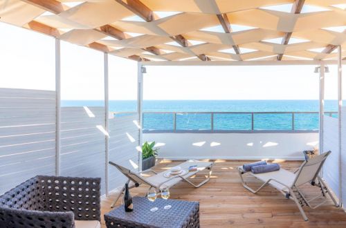 Двойна стая seafront - Построени са точно пред морето с неблокиран изглед към залива Термаикос. Разполагат с голям балкон с градински мебели и собствено джакузи за уникални моменти на релакс до морето. Разполагат с 2 единични легла. (25 m 2 )