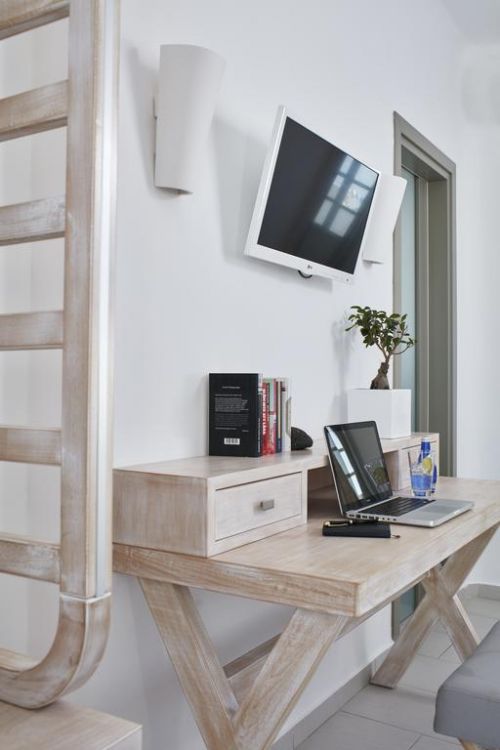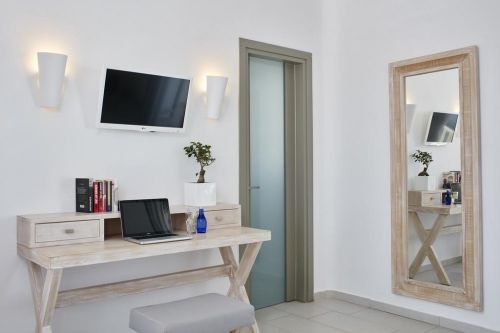 Хотелът се намира на 9 км от столицата Фира, в селището Камари, на 50 м. от брега на морето. Построен през 2001 - 2002 г. в традиционна цикладска архитектура и изцяло реновиран през 2014 г.