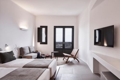 Orama Hotel & Spa предлага 100 супериорни стаи и апартаменти със стил на декорация, който съчетава линиите на санторинската архитектура с минималистични детайли. Всички сгради са на 2 етажа.