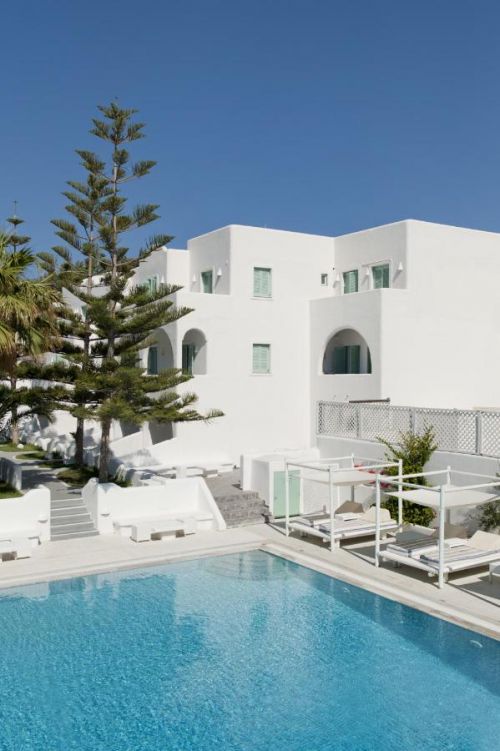 Хотелът се намира на 9 километра от летището, на 12 км от пристанище Athinios, на 15 км от живописното селище Oia, на 9 км от най-известният и добре организиран черен бряг на Камарата, в центъра на туристическото селище Фира. Местоположението на хотела е идеално за опознаването на Санторини и неговата уникална красота. Голяма част от бляскавите ресторанти, барове, магазини на централния площад в Фира се намират в непосредствена близост до хотела.