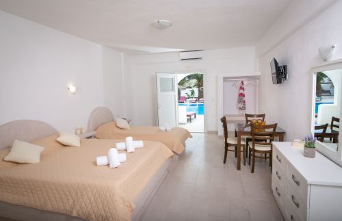 Хотел Gardenia 3* се намира в курорта Периса, само на 150 метра от оживената крайбрежна и черният пясъчен плаж. Летището на Санторини е на 13 км, а централното пристанище Атиниос - на 10 км. Столицата Фира е на 10 км.