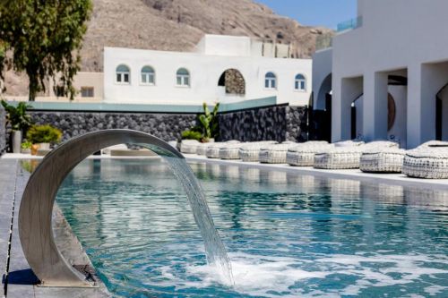 Хотелът се намира на 300 метра от плажа, в известния курорт Периса, на 12 километра от столицата на острова Фира. Летището на Санторини се намира на 10 км. Хотелът отваря врати през 2023 след пълна реконструкция.