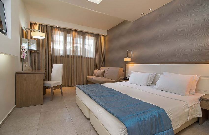 Хотелът разполага с общо 50 стаи, от които Double Economy Room(без балкон, партерен етаж, 28 м2), Single/Double Room (единичните са на партерен етаж и без балкон, с изглед към морето или сушата, 20 м2), Doubles Superior (с изглед към морето или сушата, 28 м2), Suite (с изглед към морето или сушата, 50 м2), Junior Suite (с изглед към морето, 40 м2). Всички стаи са оборудвани с климатик, телевизор, телефон, баня с хидромасажен душ, сешоар, хладилник, сейф (безплатен), балкон. Почистване на стаите и смяна на кърпите - всеки ден, смяна на спално бельо - 2 пъти в седмицата.