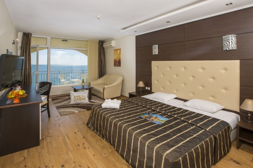 - до летище Варна - 30kmНапълно реновиран за летния сезон на 2013 година, Калиакра Палас е модерен и удобно обзаведен хотел с идеално местоположение – на първа линия до плажа в курортен комплекс Златни Пясъци.