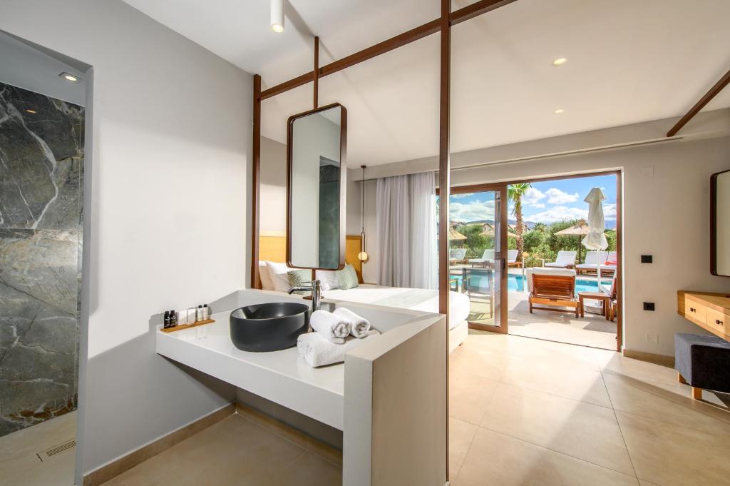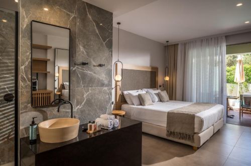 Хотелът се състои от 19 двуетажни сгради и разполага с общо 267 стаи- standard room (30 м2); family room open plan (38 м2); family room 2 bedrooms (40 м2); suite private pool (40 м2); suite sea view sharing pool (35 м2). Всички стаи са оборудвани с климатик, телевизор, телефон, баня с душ/вана, сешоар, минибар /платен/, сейф /платен/, балкон/тераса, Wi-Fi интернет /безплатно/. Почистване на стаите- вески ден, смяна на спалното бельо и кърпите - 3 пъти седмично.