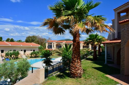 Хотелът се намира на п-в Ситония, на 1,5 км. от Метаморфoси, на 90 км. от летището в Солун, на брега на морето. Частично реновиран през 2016 г.