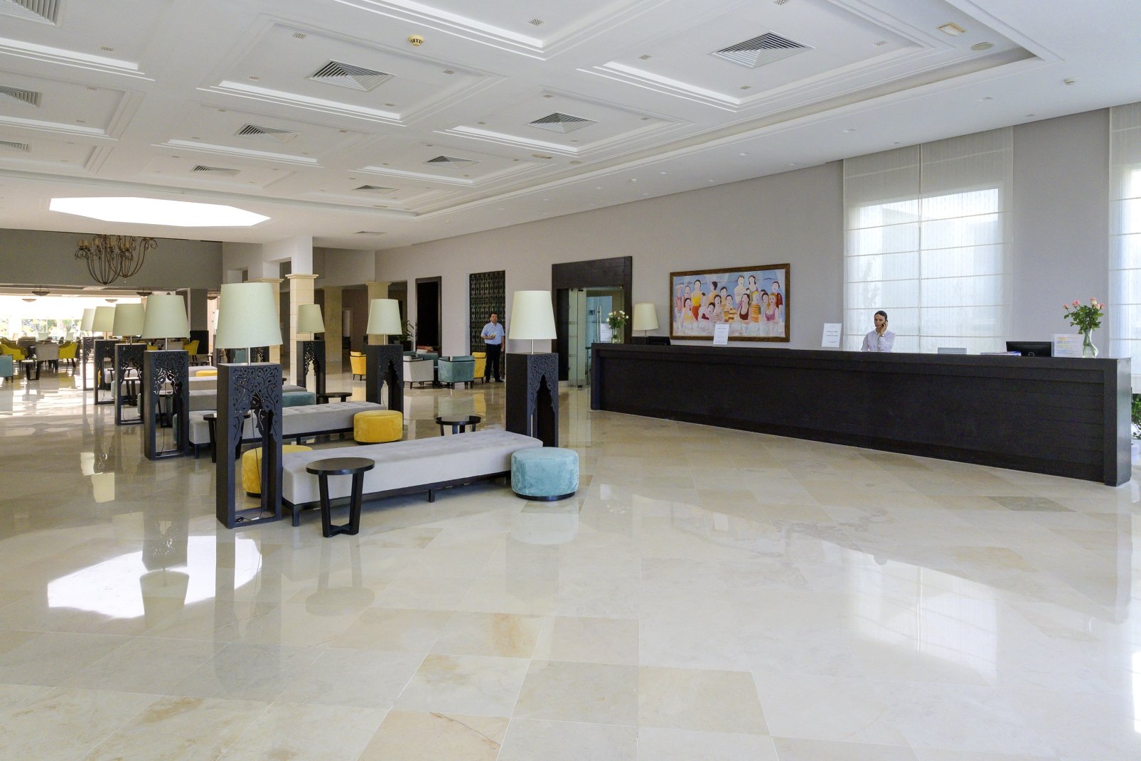 Основен ресторант Thusdrus, 2 а ла карт ресторанта - един с интернационална кухня и втори на плажа, барбекю ресторант (едно безплатно посещение на престой, след предварителна резервация), лоби бар, бар басейн, мавританско кафене, 2 открити басейна, закрит басейн, вътрешен басейн с морска вода в таласо центъра, 5 водни пързалки за възрастни и 1 за деца, анимация, Wi-Fi в лобито, общи части и стаите, сувенирен магазин, обмяна на валута, паркинг.