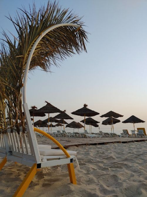 Собствен, пясъчен плаж, с лек наклон, пред хотела. Чадъри и шезлонги на плажа и при басейна - безплатно. Плажни кърпи - срещу депозит.