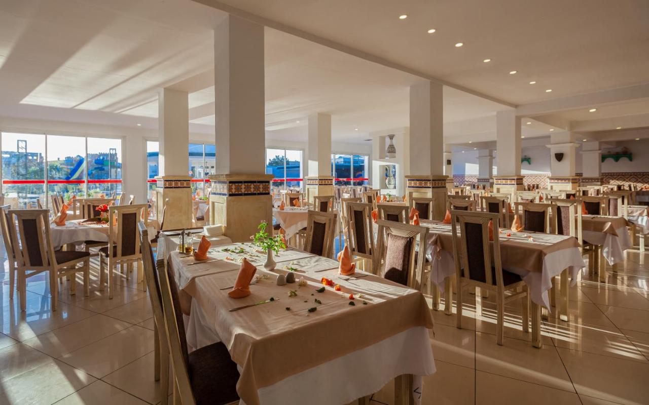Основен ресторант, лоби бар, снак бар на басейна, мавританско кафене, открит басейн, закрит басейн (отопляем през зимата), аква парк (2 басейна, 10 водни пързалки: 5 пързалки за възрастни, 5 пързалки за юноши, басейн с мини пързалки за малки деца), СПА център, конферентна зала, магазини, обмяна на валута.