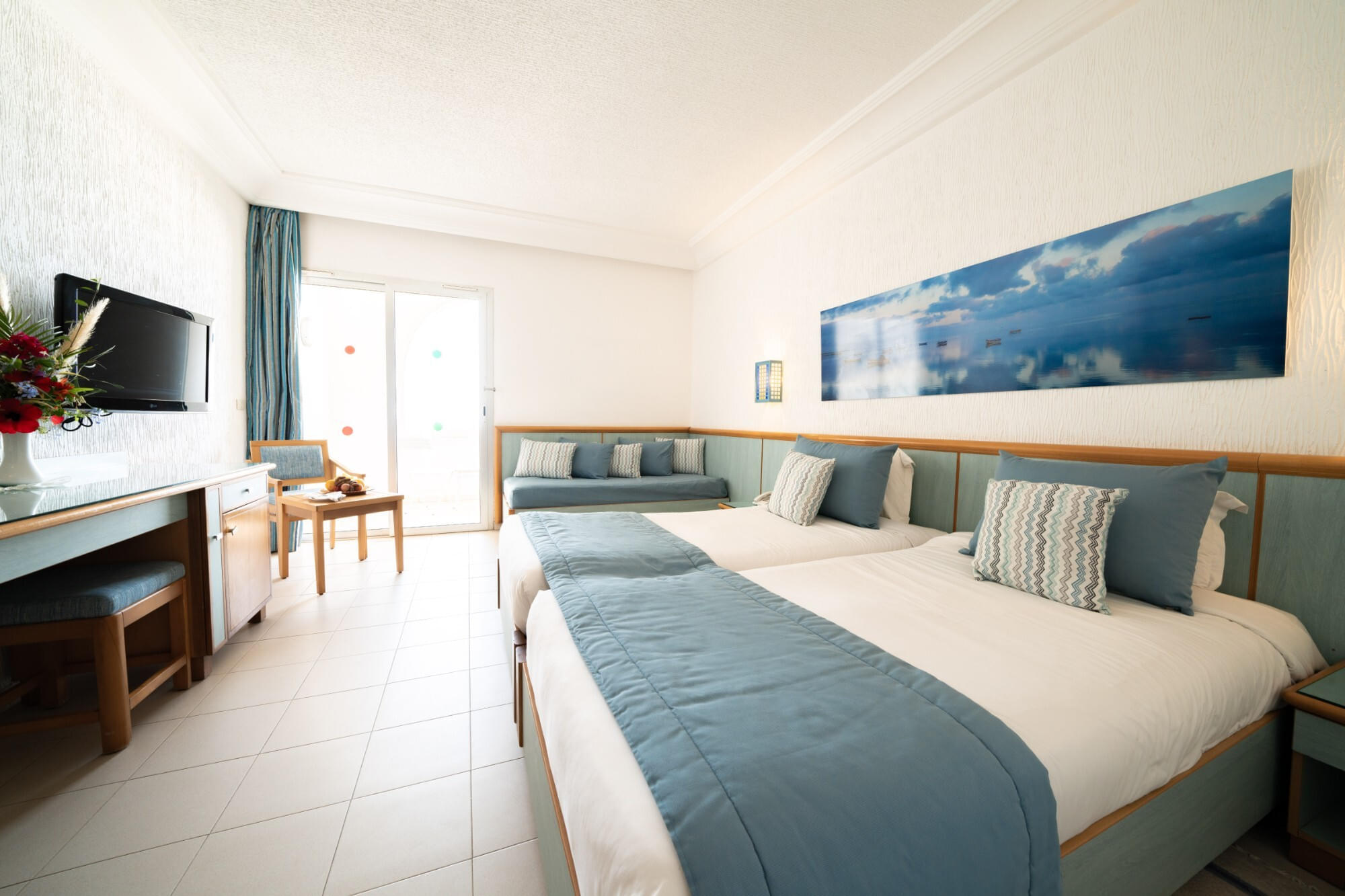 Всички стаи са оборудвани с климатик, телевизор, телефон, баня с душ/вана, сешоар, сейф, мини бар (зареден в вода при пристигане), балкон или тераса, Wi-Fi. Почистване на стаите - всеки ден.