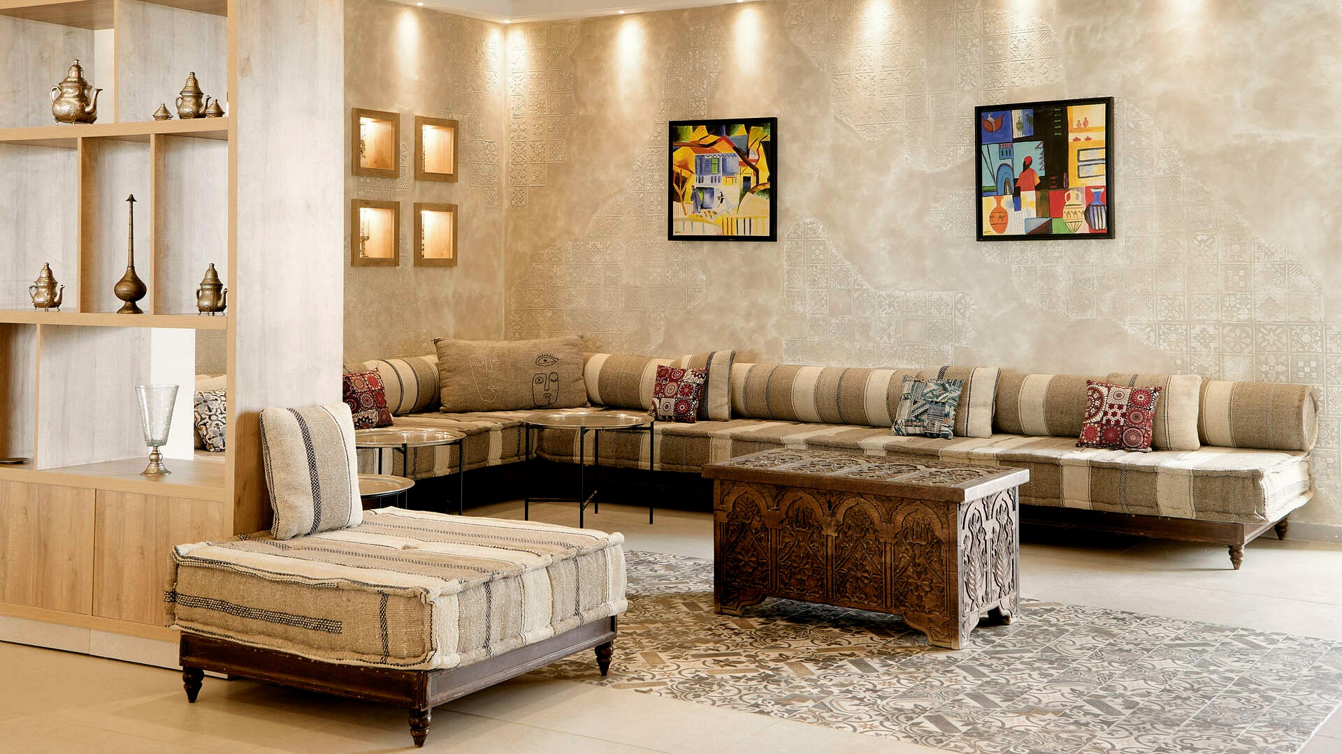 Основен ресторант Mosaîque, барбекю плажен ресторант, а ла карт ресторант La Guellala с арабска, азиатска и средиземноморска кухня (срещу заплащане, едно безплатно посещение на престой, след предварителна резервация), лоби бар L’Artiste, бар на плажа (през лятото), бар на басейна (през лятото), мавртитанско кафене (срещу заплащане), открит басейн, закрит басейн (отопляем през зимата), 24 часова рецепция, 4 конферентни зали, СПА център, сувенирен магазин, обменно бюро, анимация, 7 тенис корта.