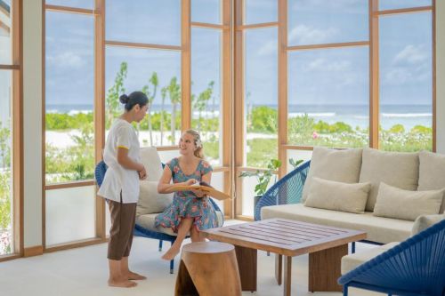 20 Beach Suite - плажен апартамент с гледка залез, 70м2, предлага повече пространство с по-големи всекидневни и бани. Те се намират от противоположната страна на остров със зашеметяваща гледка към залеза и типична малдивска баня на открито.