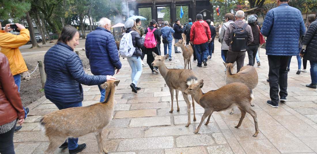 Закуска. Напускане на хотела. Отпътуване за старата столица Нара (32 км). Пристигане в Нара и посещение на будисткия храм Тодайджи – един от седемте най-големи в Япония. Основната сграда е призната за най-голямата дървена конструкция в света и приютява колосалната бронзова статуя на Буда с височина 15 м. Разглеждане на шинтоитското светилище Касуга Тайша, използвано и като семейна гробница на фамилията Фудживара, дала на Япония много регенти и императори през периода Нара. Паметник на ЮНЕСКО, гробницата впечатлява с украсата от многобройни бронзови и каменни фенери. В храмовия комплекс са разпръснати множество по-малки светилища, разположени по протежение на пътя покрай главния храм и посветени на дванайсетте бога на късмета. Комплексът e известен и със своя парк с елени, където животните се разхождат на свобода и могат да бъдат наблюдавани. Обяд. Отпътуване за Киото (45 км). Пристигане в Киото. Разглеждане на храмовия комплекс Кийомидзу – един от най-древните храмови комплекси в страната, издигнат недалеч от водопада и кристално чистата вода в планината Отова. Разглеждане на храма Санджусанген-до – датиращ от 1266 г. и съхраняващ изумителните 1001 статуи на богинята Канон. Нощувка в Киото.