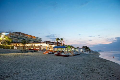 Хотелът е разположен на 100 км. от Солун, в курорта Ханиоти, в близост до центъра на курорта, на 60 м. от хубав пясъчен плаж. Реновиран през 2007 г.