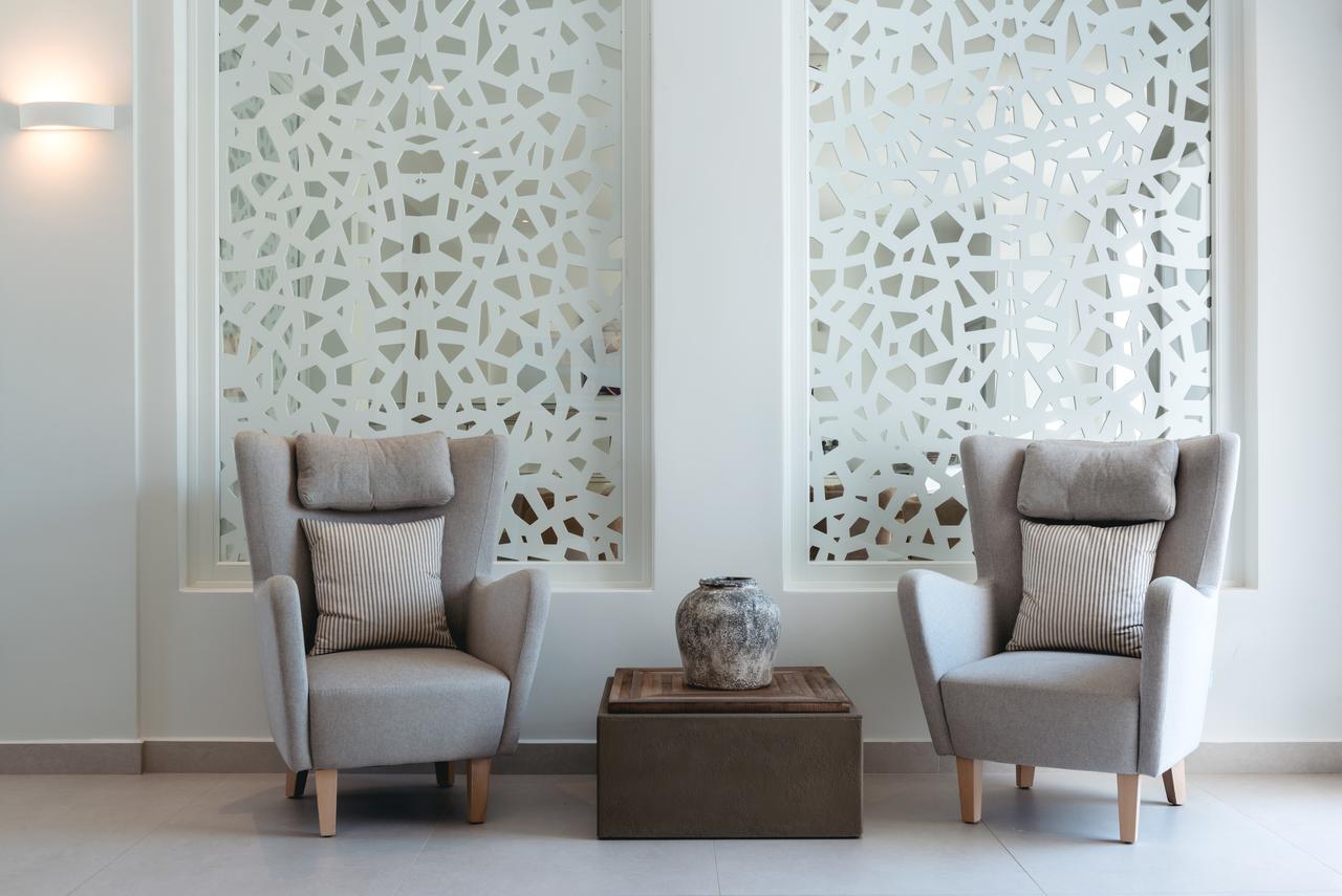 На терасата за закуска се сервира закуска с гръцко кисело мляко, традиционни специалитети и домашни сладкиши. В бара край басейна, заобиколен от палми, се сервират коктейли, кафе и леки закуски.