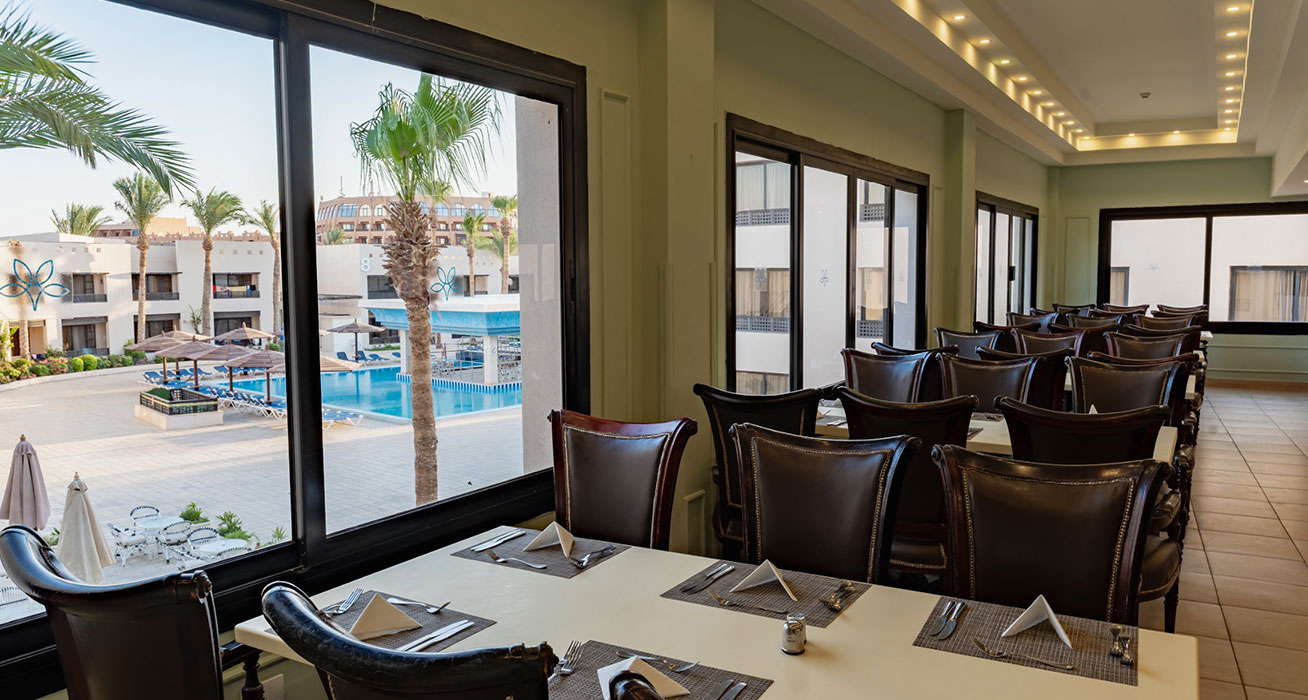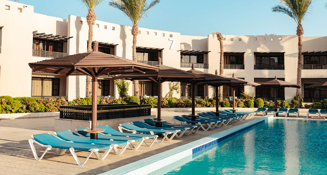 Намира се на 17 км. от летище Хургада, на 23 км. от центъра на Хургада, на брега на морето.
