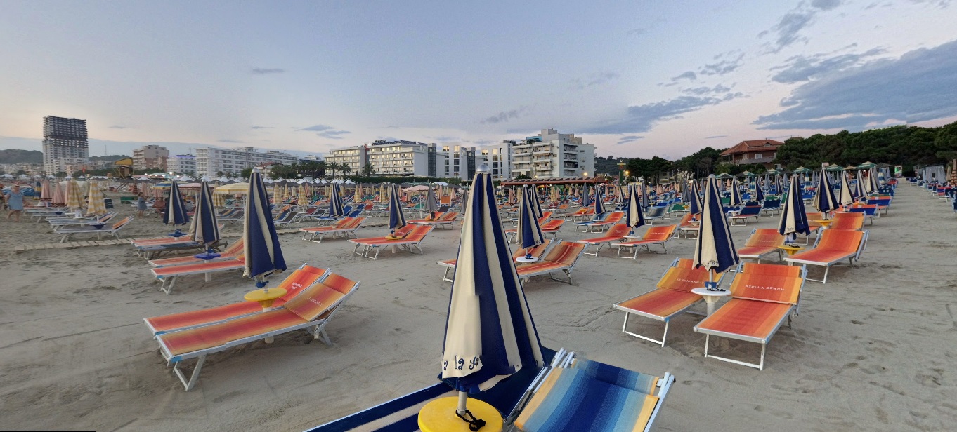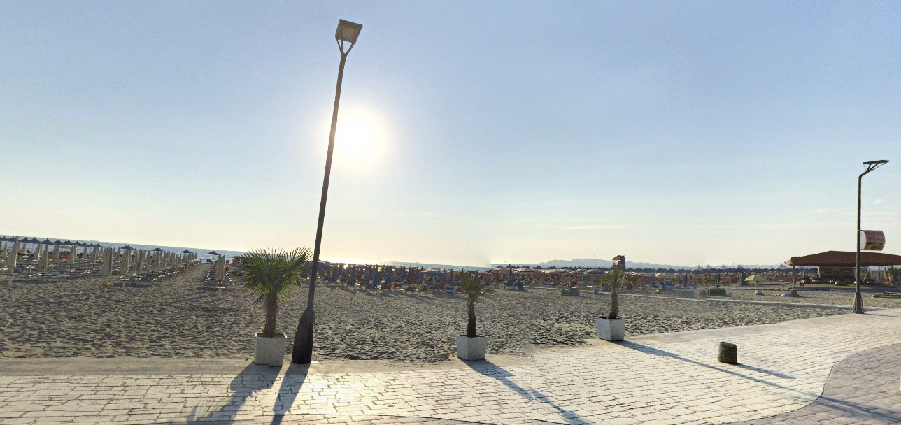 Градски пясъчен плаж. Чадъри и шезлонги на плажа - срещу заплащане.