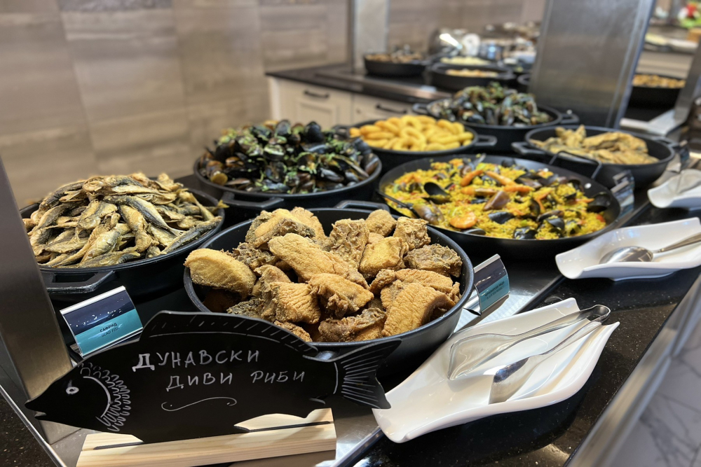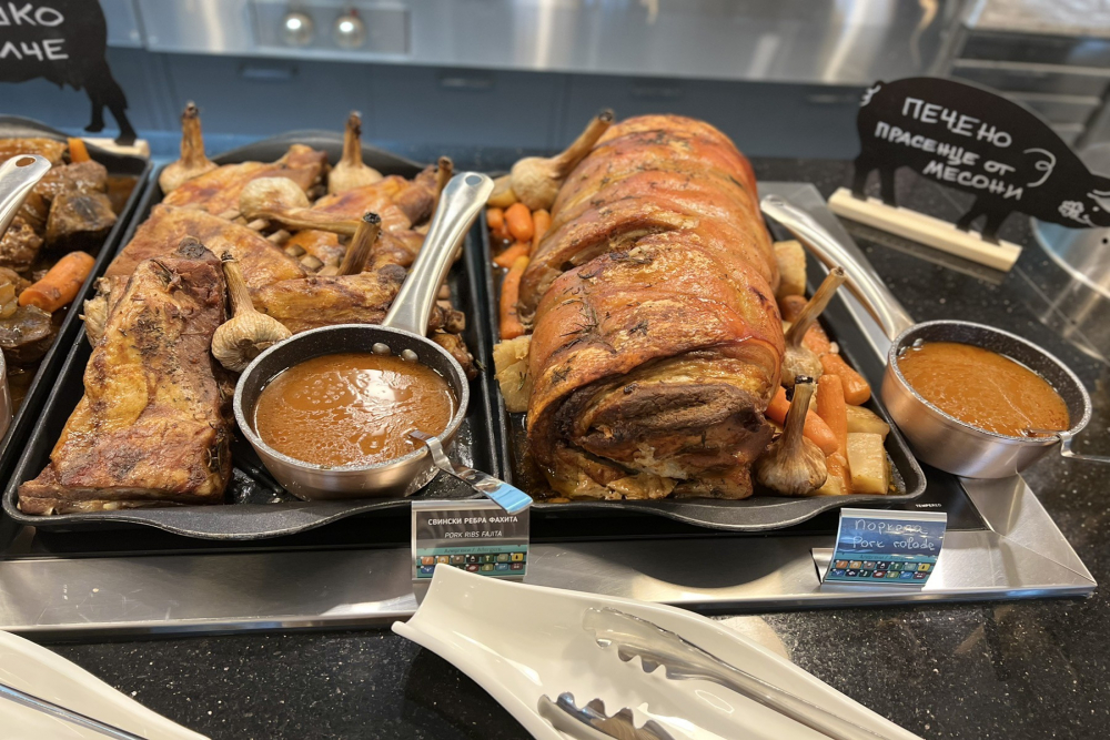Закуска /07:30 - 10:00/ - на блок маса - разнообразие от пресни сезонни плодове и зеленчуци от региона, месо от собствени ферми, хляб приготвен на място, разнообразие от домашни десерти, био и диетична секция. Към закуската има включени топли напитки, безалкохолни напитки и сокове, млека и фрешове.