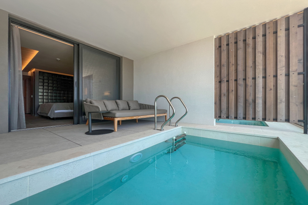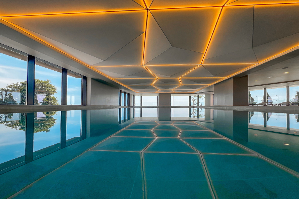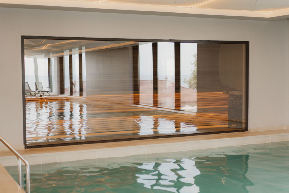 Закрит отопляем басейн с отделно джакузи с изглед към морето
