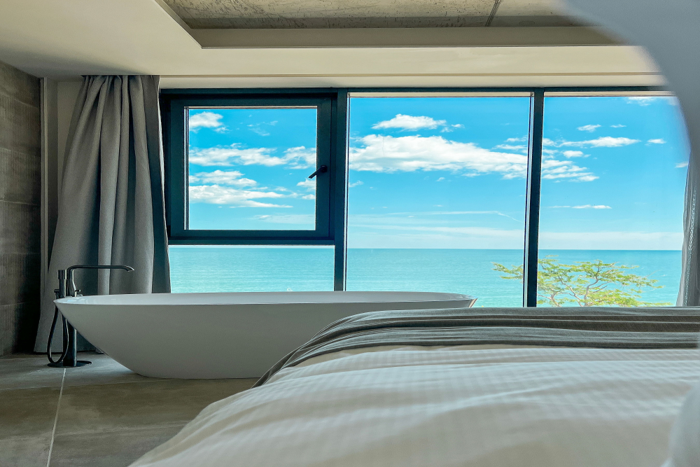 Закрит отопляем басейн с отделна хидромасажна зона и гледка към морето