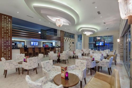 Основен ресторант, 3 бара, открит и закрит басейн, СПА център, магазини.