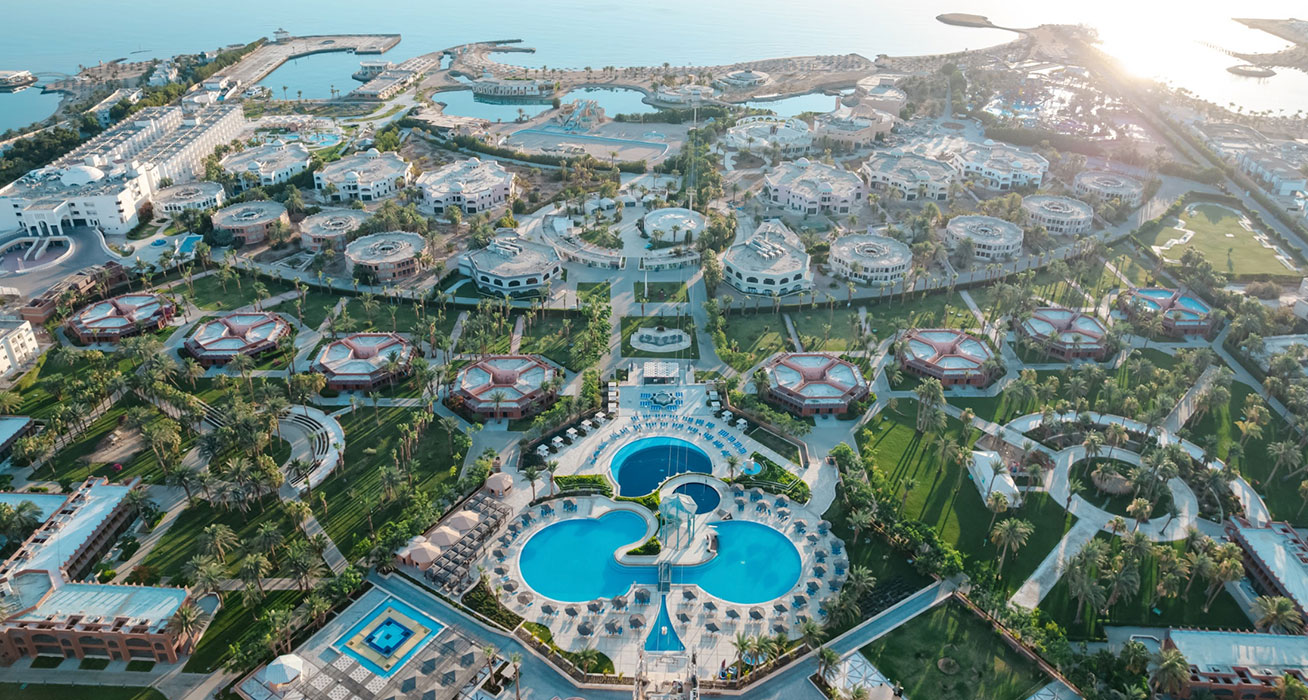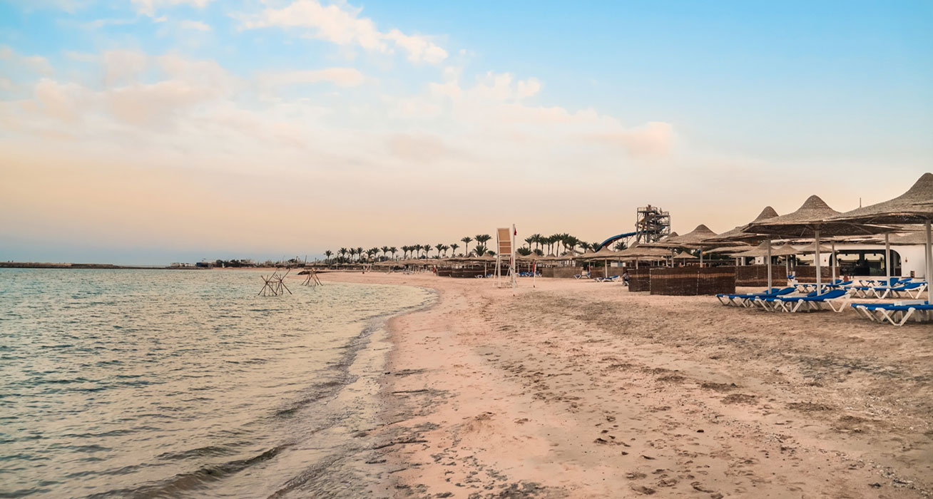 Намира се на 17 км. от летище Хургада, на 23 км. от центъра на Хургада, на брега на морето.