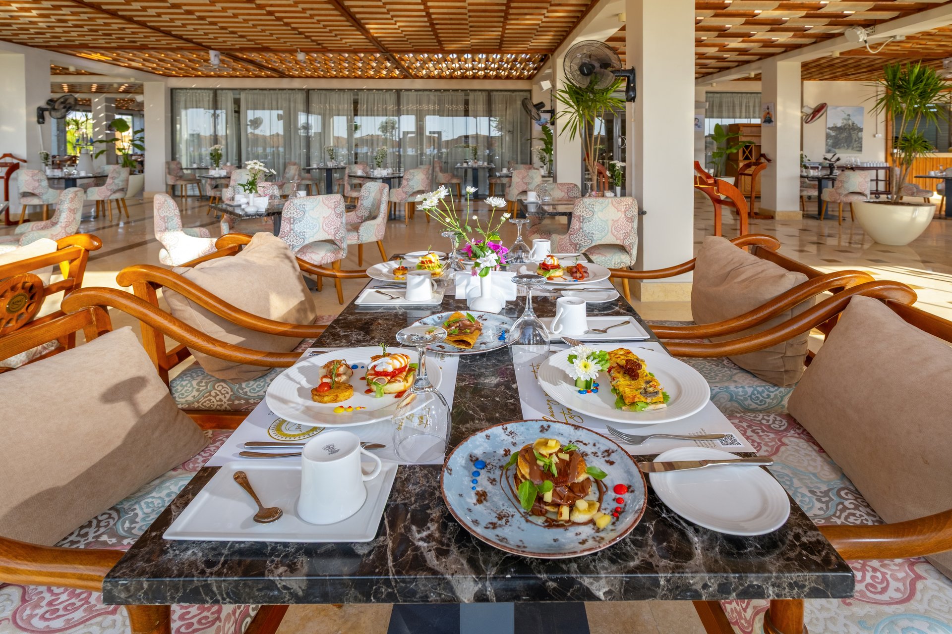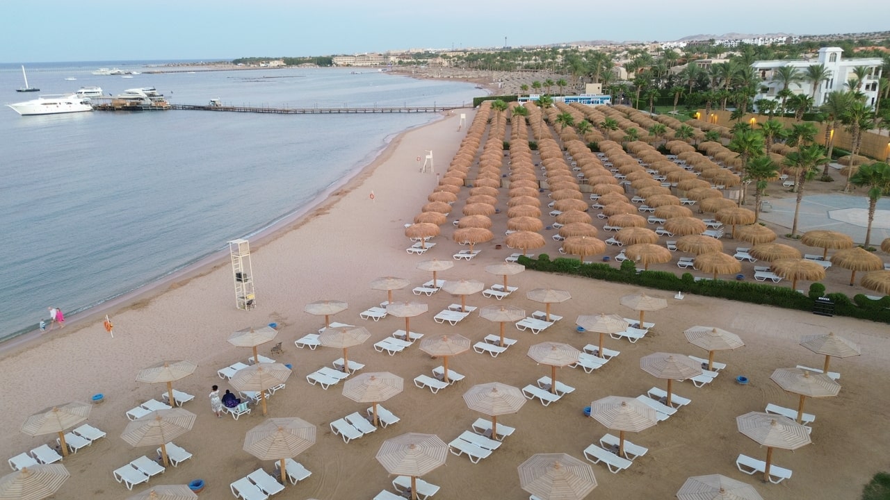 Собствен, пясъчно – чакълест с коралов риф, понтон и частна марина. Чадъри, шезлонги и матраци на плажа и при басейна - безплатно. Плажни кърпи – безплатно.