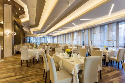Вечеря /18:30 - 21:00 ч./ - на блок маса - българска и международна кухня; салати, предястия, основни ястия и десерти. Безплатни напитки по време на вечерята не се предлагат.