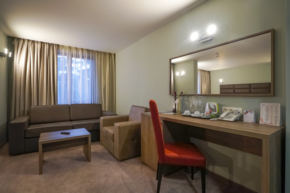 Достъп до спа услуги: външно и вътрешно джакузи, тропически душ, инфраред сауна, финландска сауна, кедрова сауна, билкова сауна, парна баня, арома парна баня, арома билкова сауна, солна стая, ледена стая, турска баня, фитнес, зона за релакс.