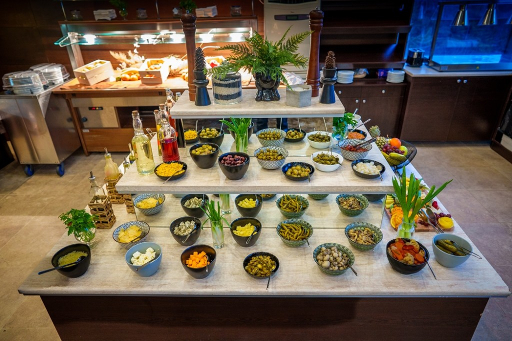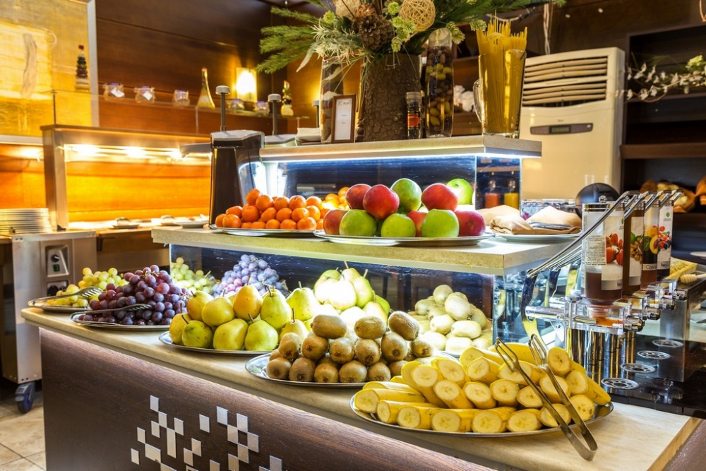 Закуска /07:30 - 10:00 ч./ - на блок маса в ресторанта на хотелa - различни пресни плодове и зеленчуци, сирена, корнфлейкс, кроасани, палачинки, яйца, студени и топли напитки.