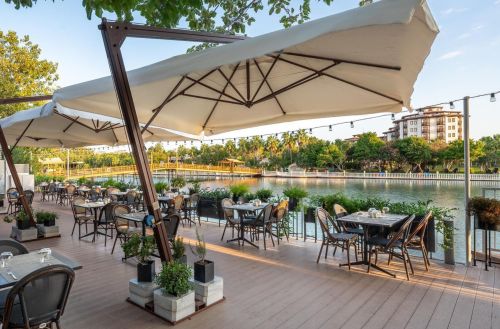 Основен ресторант, 5 а-ла-карт ресторанта (7/24 ресторант, снек а-ла-карт – безплатно; турски, италиански, рибен – 1 безплатно посещение на 1 от ресторантите при минимум 7 нощувки, с предварителна резервация), сладкарница, 9 бара (24/7 бар, 3 лоби бара, 2 бар при басейните, бар на плажа, кафе бар, витамин бар), 4 открити и 1 закрит басейн, аквапарк с 5 водни пързалки за възрастни, СПА център, 5 конферентни зали, магазини, паркинг.