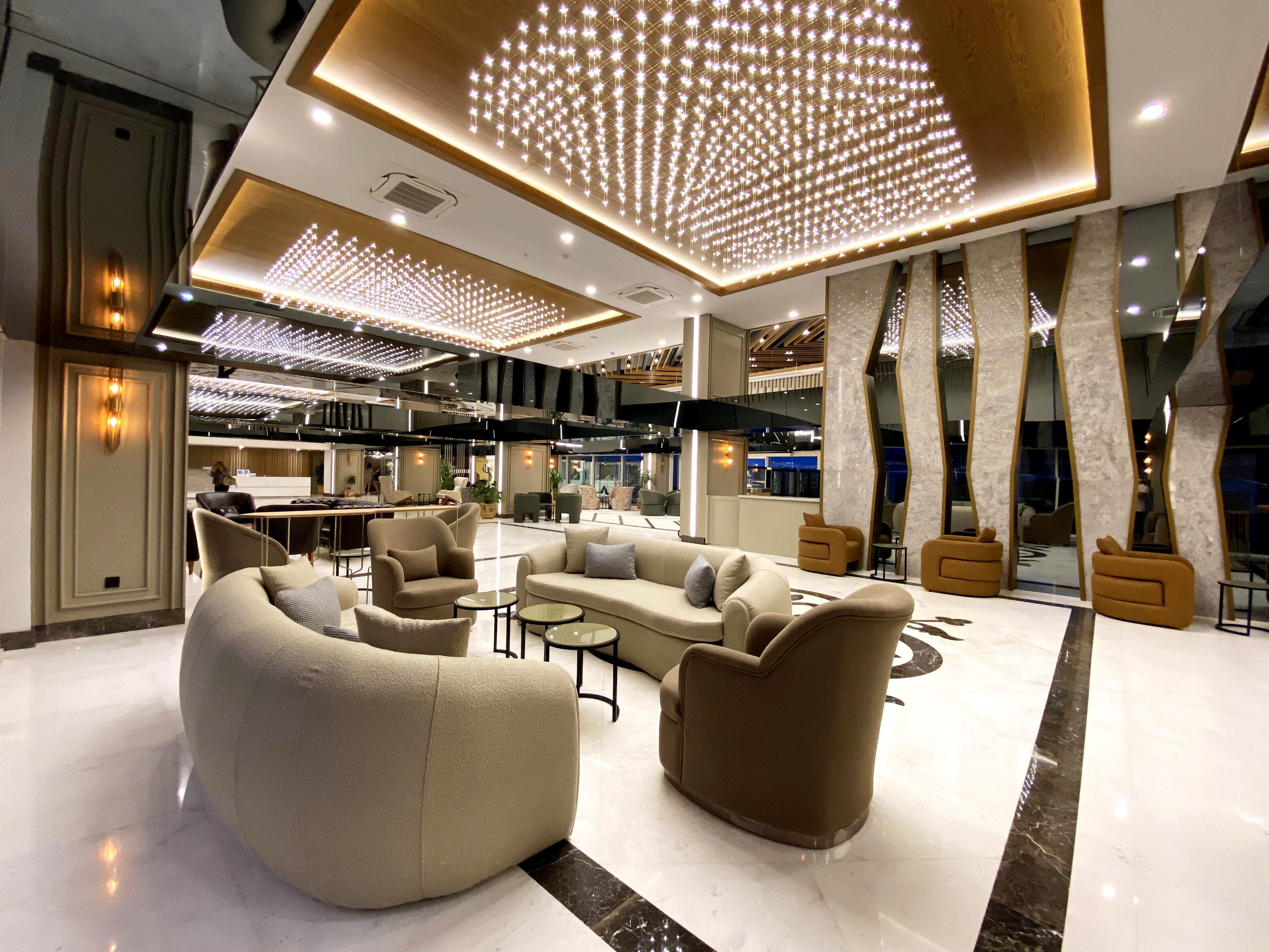 Основен ресторант, 4 а-ла-карт ресторанта - рибен, турски, италиански (1 безплатно посещение на 1 от ресторантите при минимум 7 нощувки), стек (срещу заплащане с предварителна резервация), сладкарница, Starbucks кафе, 6 бара, 2 открити и 1 закрит басейн, водни пързалки, СПА център, дискотека, магазини, конферентнa залa, паркинг.