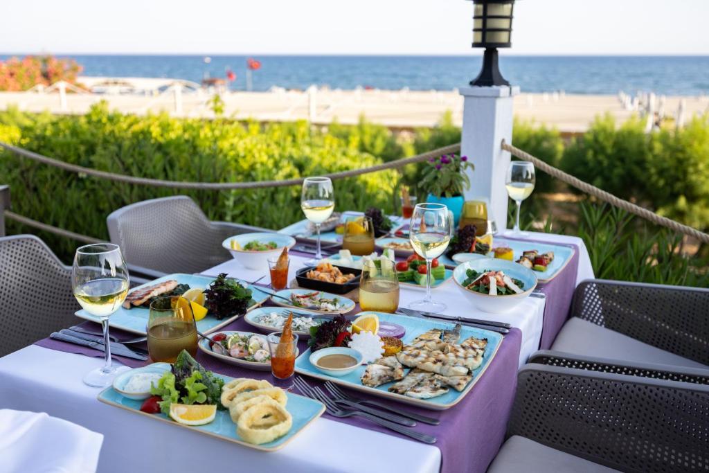 Ultra All Inclusive - закуска, обяд и вечеря на шведска маса, междинни хранения, алкохолни и безалкохолни напитки - без лимит (съгласно концепцията на хотела).
