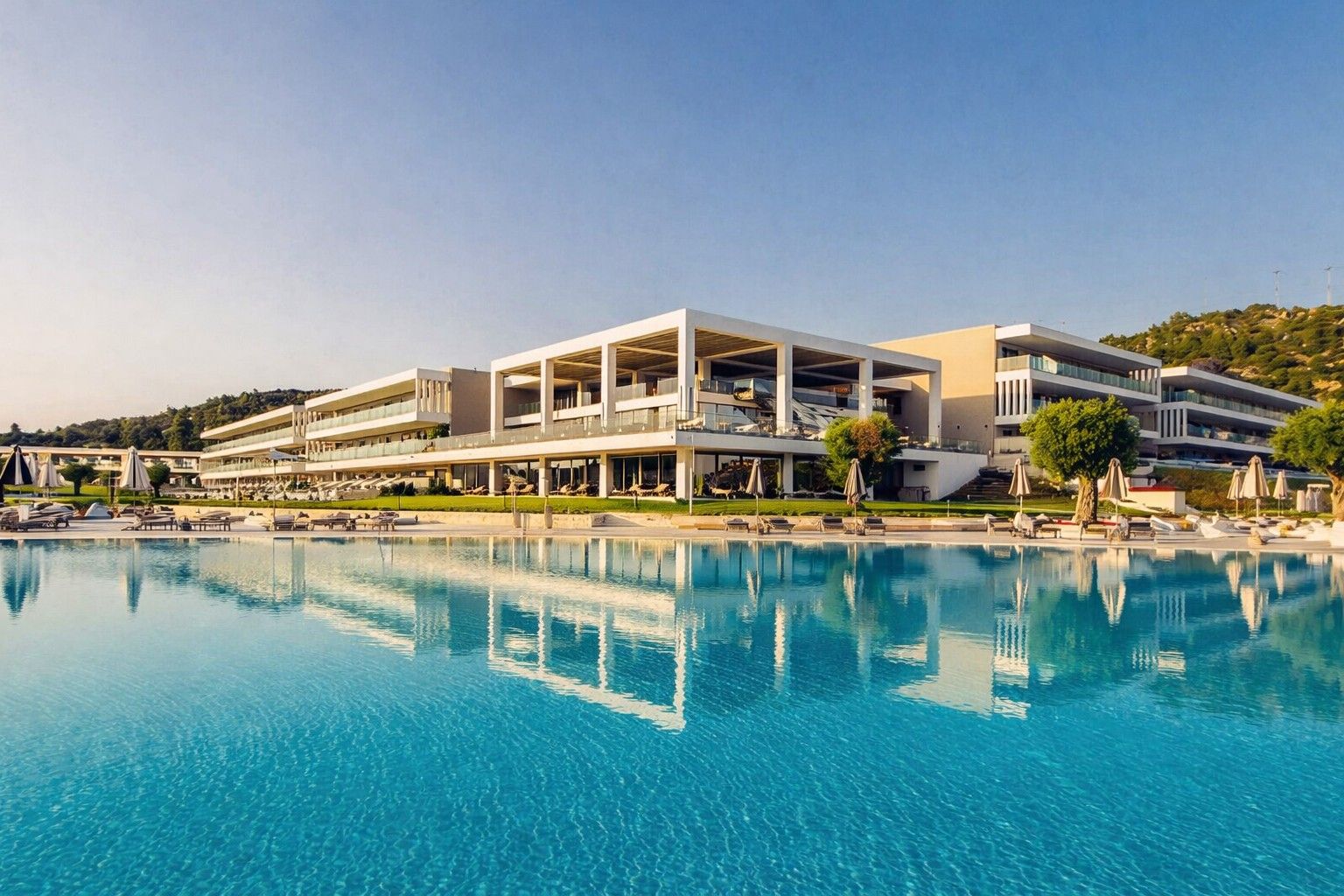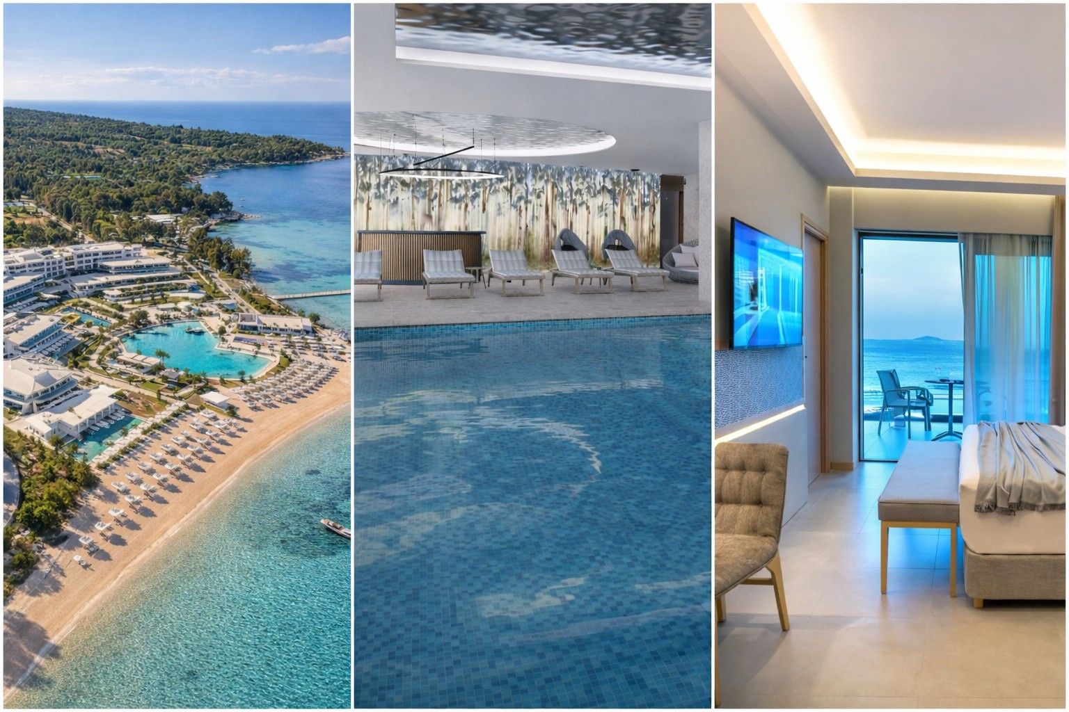 Ammoa Luxury Hotel & Spa Resort е модерен петзвезден комплекс, разположен директно на морския бряг в Халкидики, съчетаващ елегантна архитектура, просторни помещения и усещане за дискретен лукс. Хотелът е проектиран с фокус върху спокойствието, комфорта и личното пространство на гостите, което го прави изключително подходящ избор за майска почивка и удължен уикенд около 24 май.